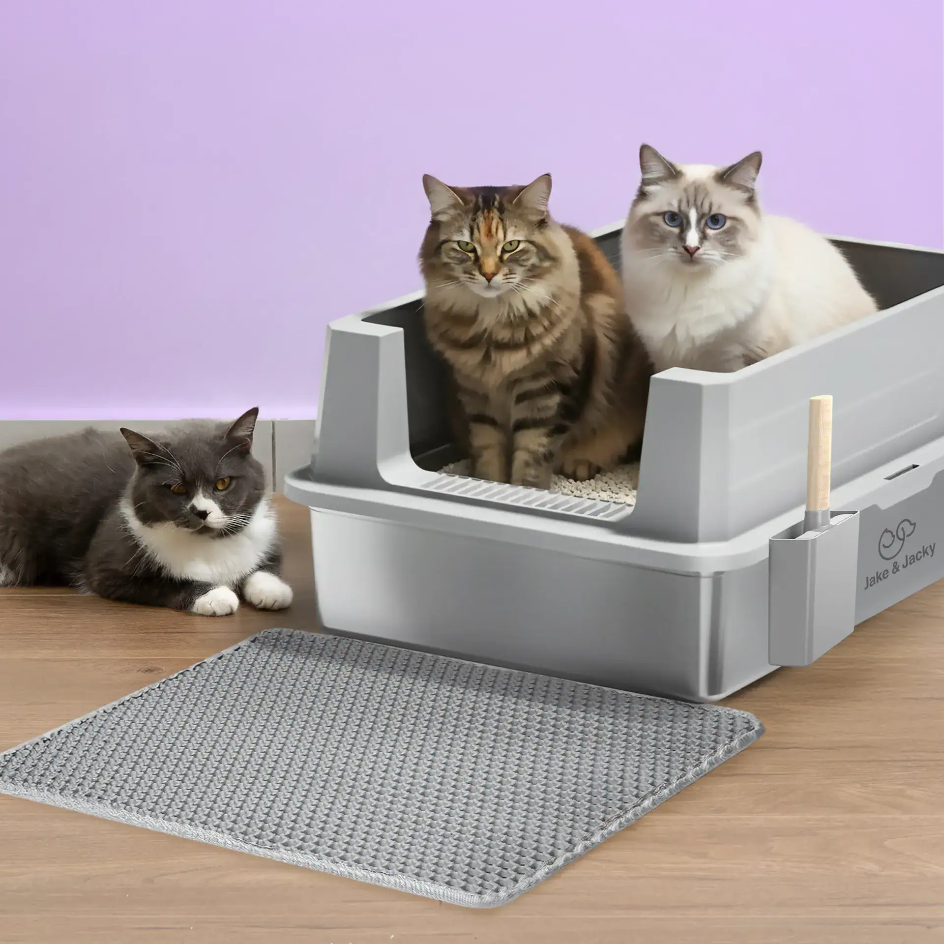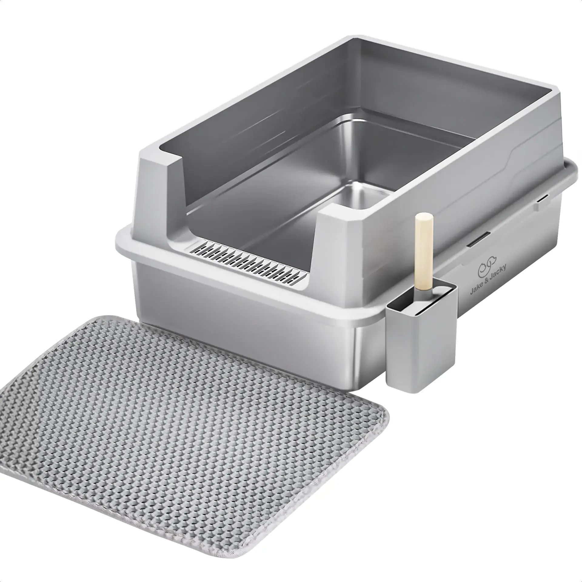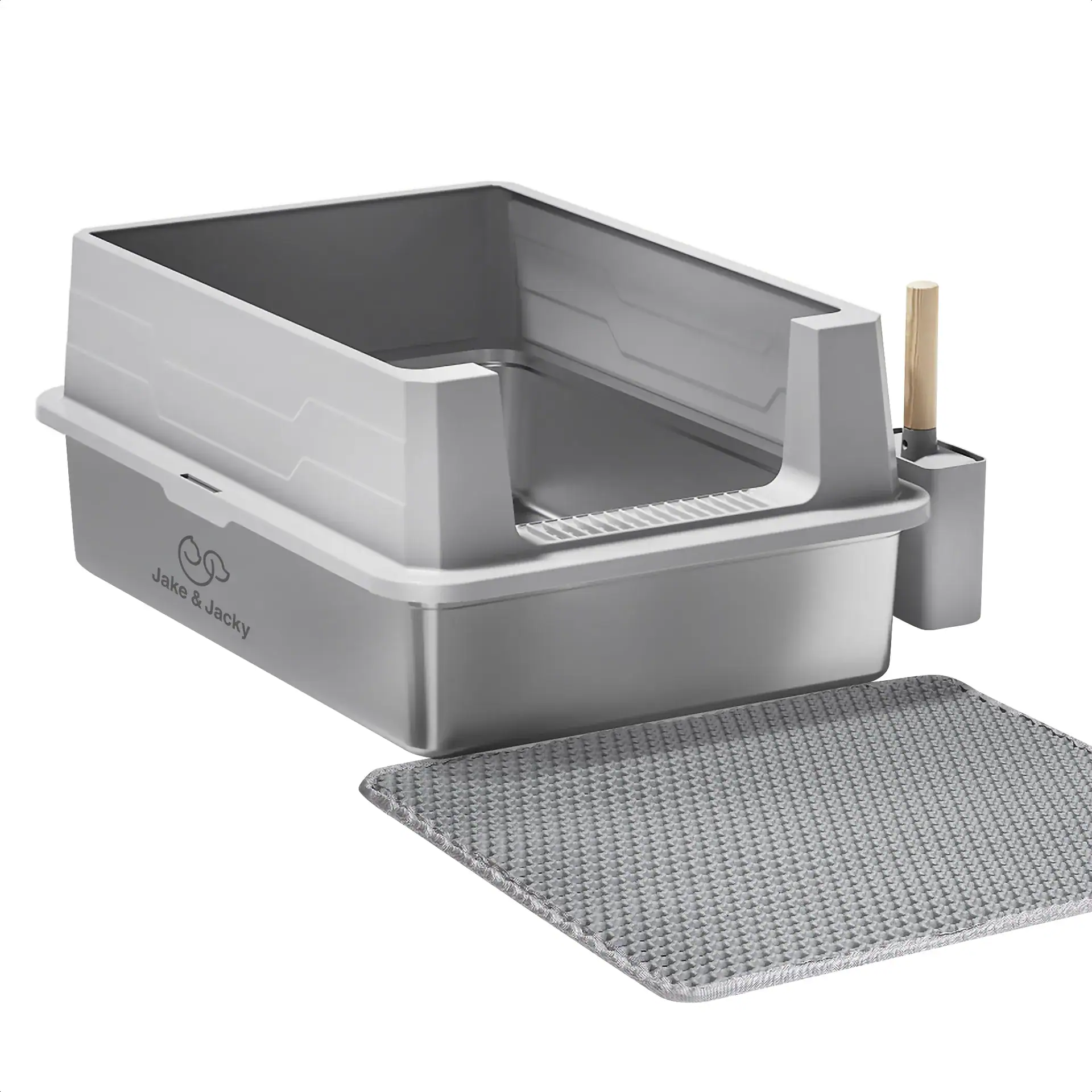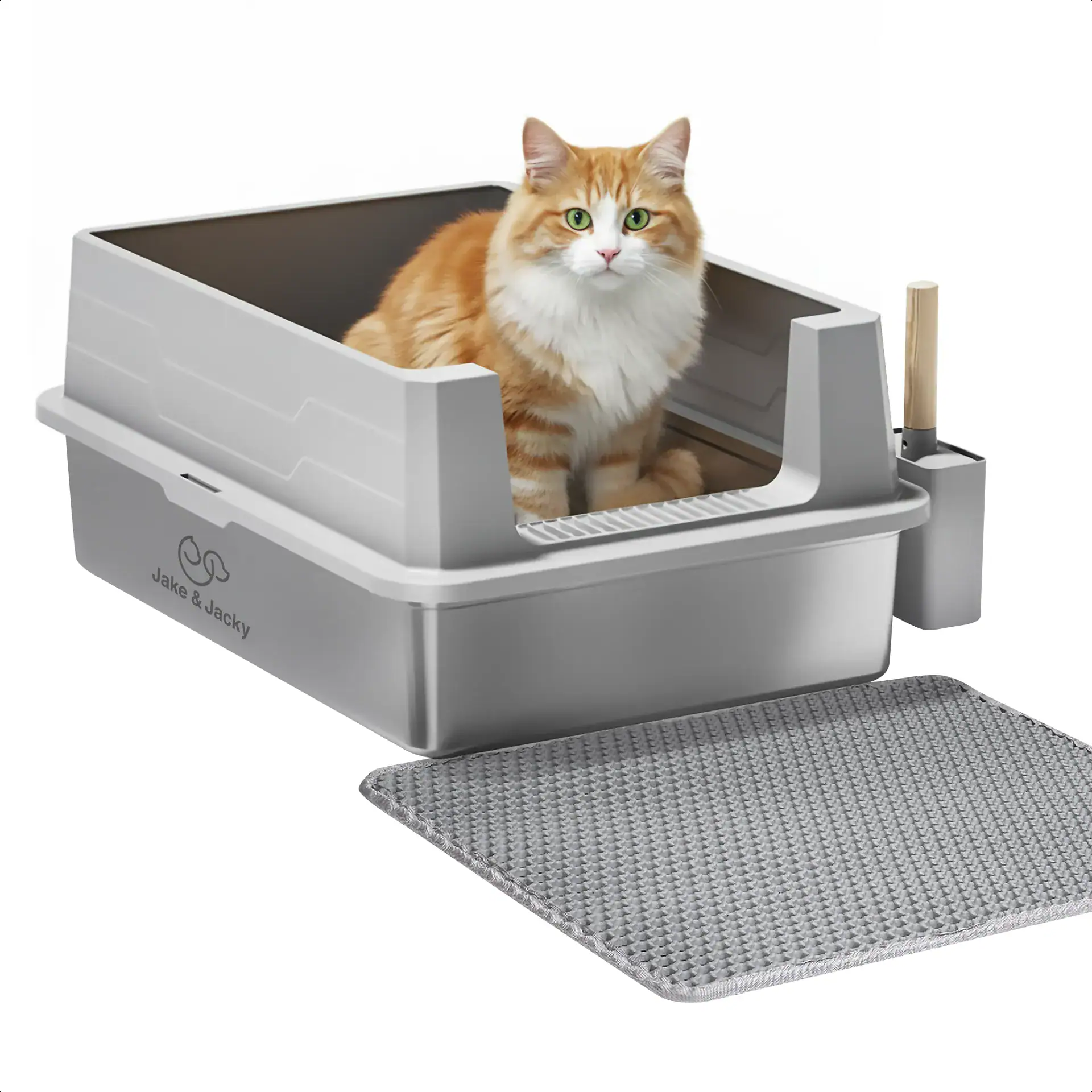 Ben jij op zoek naar een extra grote kattenbak, die geen vieze geurtjes vasthoud, welke makkelijk schoon te maken is, een lange levensduur heeft én een fijne plek biedt voor jouw kat(ten)? Dan is onze innovatieve XXL RVS kattenbak van Jake & Jacky een uitkomst. Onze kattenbak is extra ruim en gemaakt van RVS, welke bestand is tegen vastgekoekte gritresten. Dit voorkomt de typische kattenbak geur zoals bekend bij kunststof varianten. Met de bijleverde gritopvang mat voorkomen we dat het hele huis onder de kattengrit ligt nadat jouw kat klaar is met zijn boodschap.