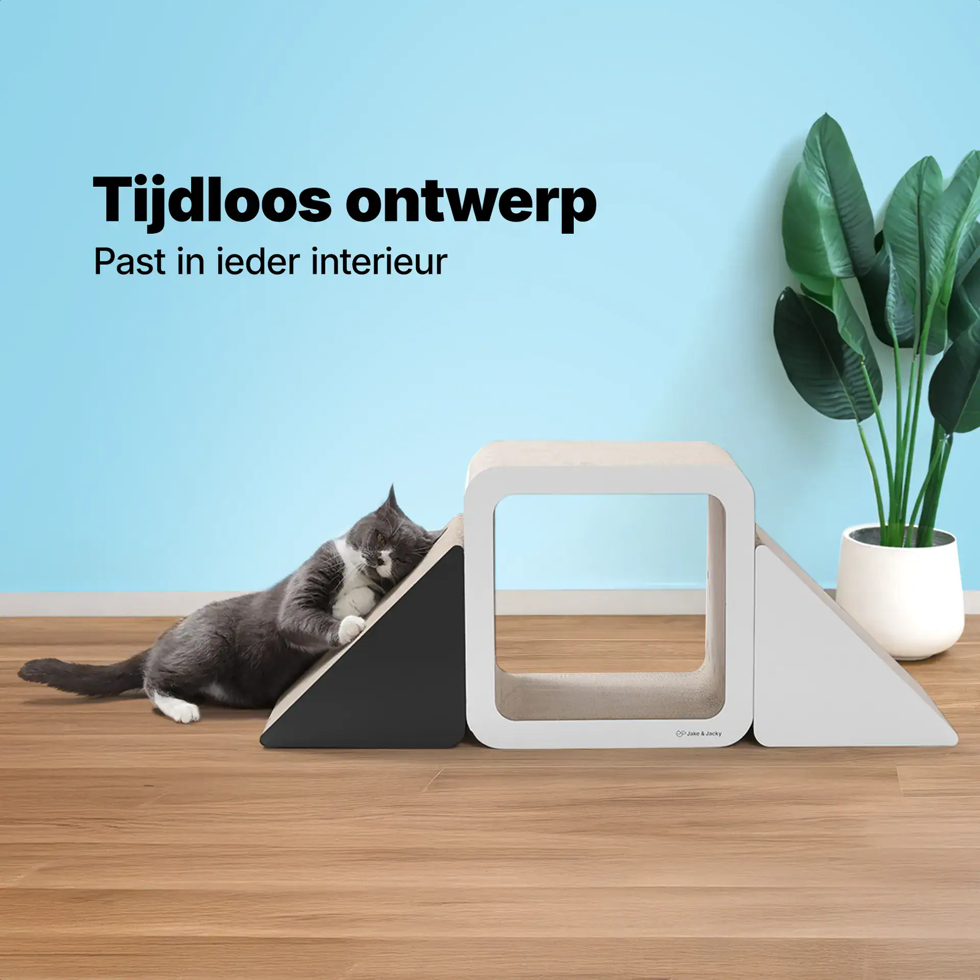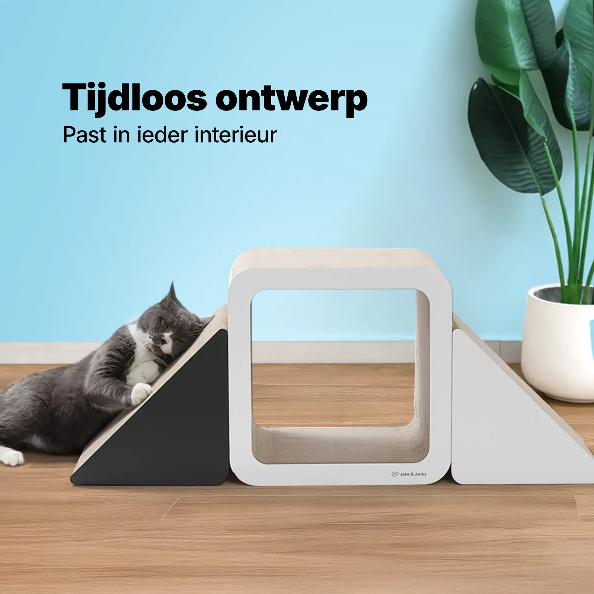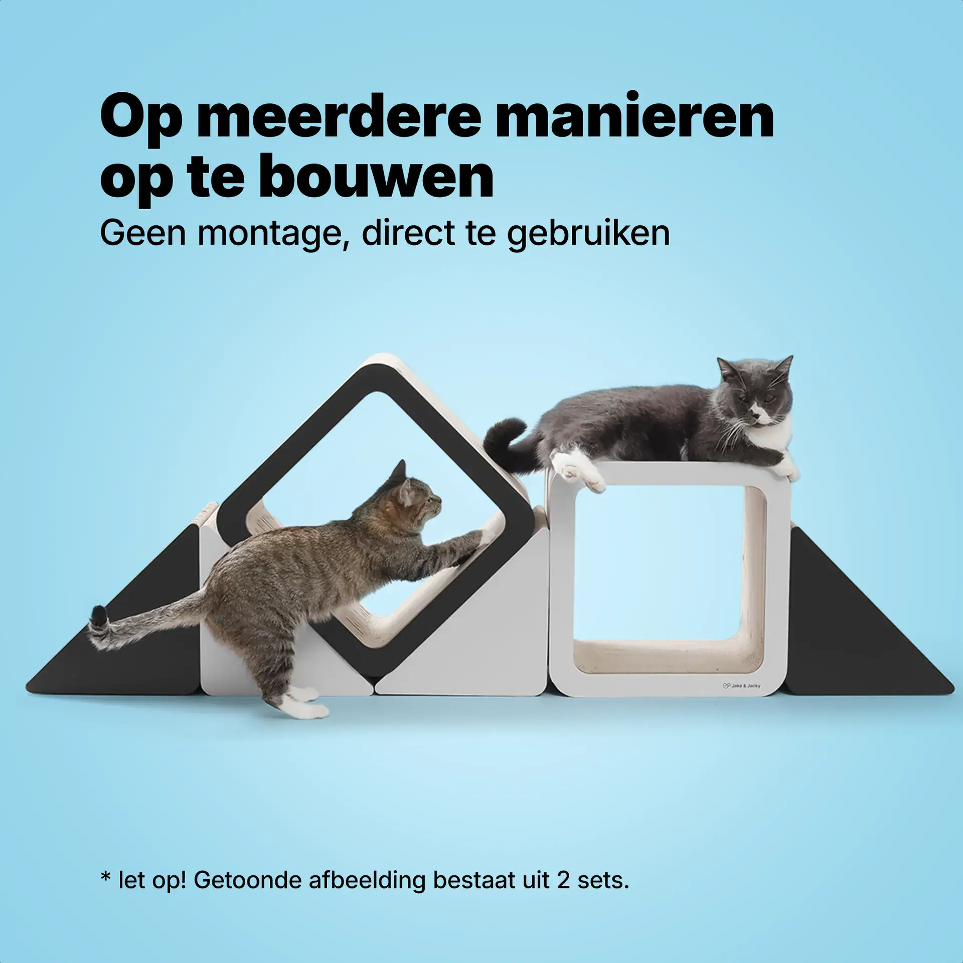 Naast dat dit krabmeubel graag gebruikt zal worden om aan te krabben, is het ook heerlijk als kattenmand en een fijne speelplek voor jou kat(ten). De 3 losse blokken zijn in elke gewenste opstelling neer te zetten voor speelvariatie, extra leuk om 2 sets neer te zetten voor nóg meer speel mogelijkheden of bij meerdere katten. Kies ook je gewenste kleur, wit of zwart of maak een mooie combinatie.