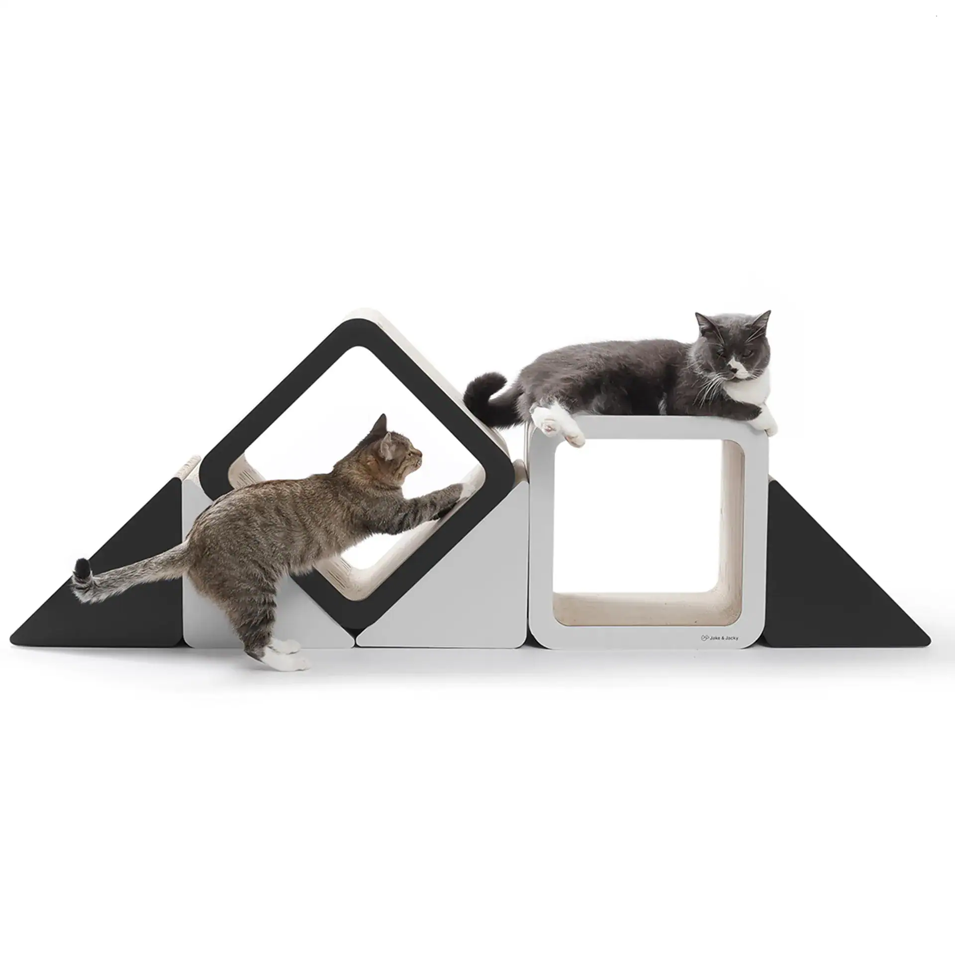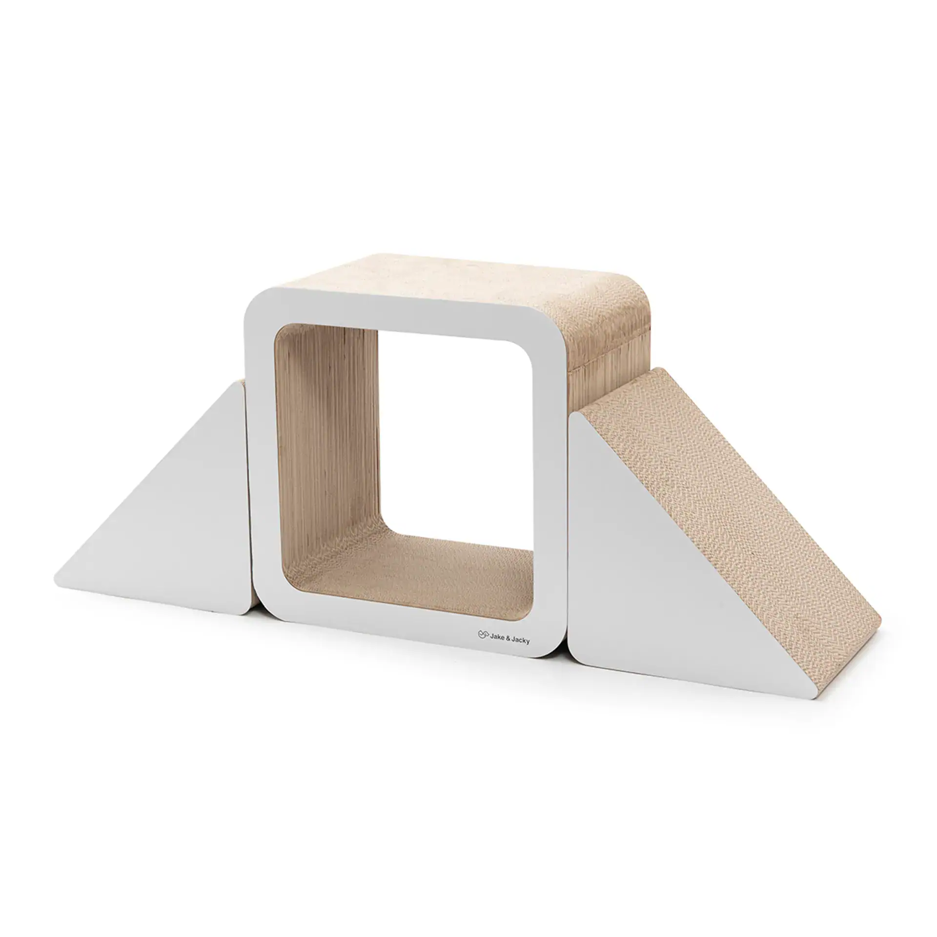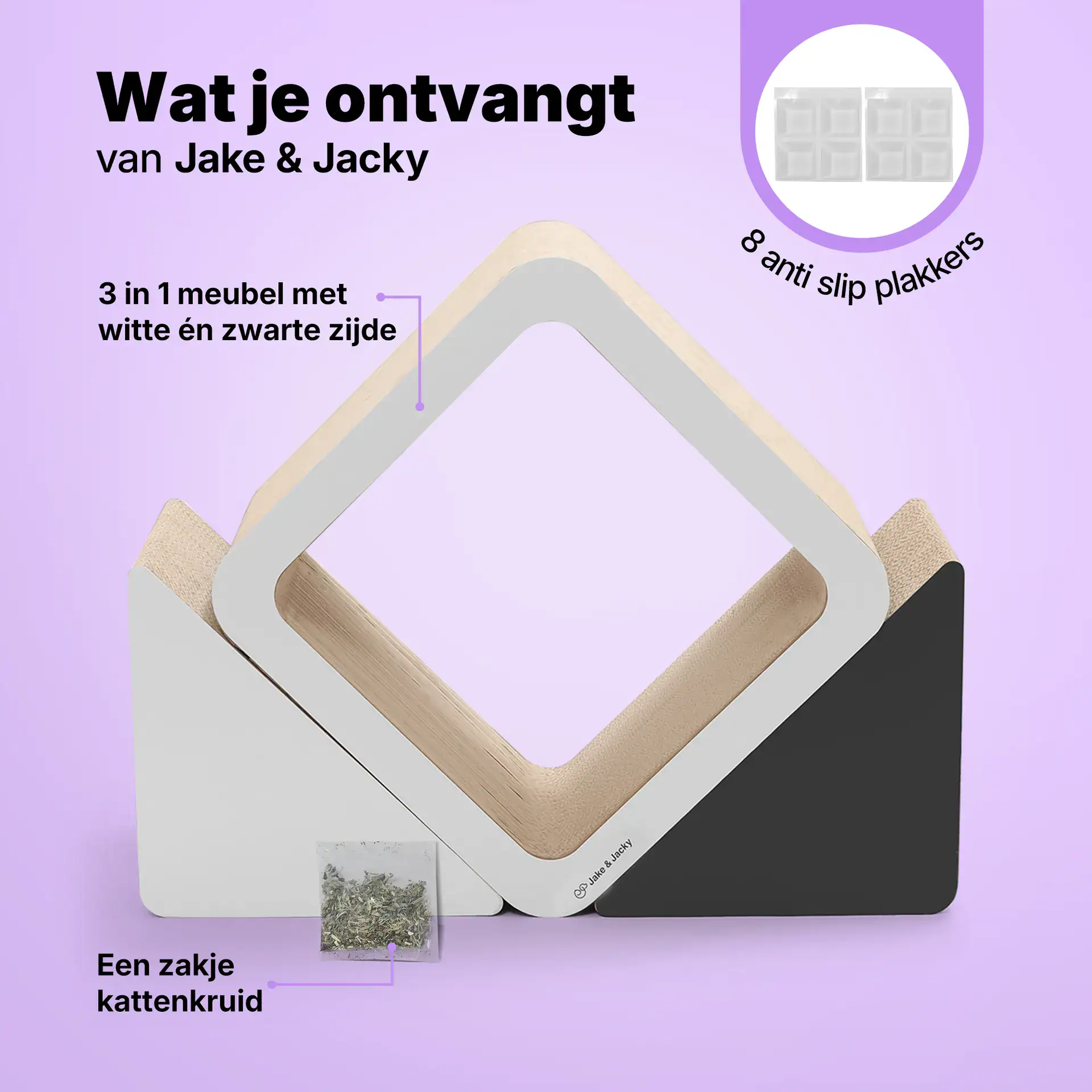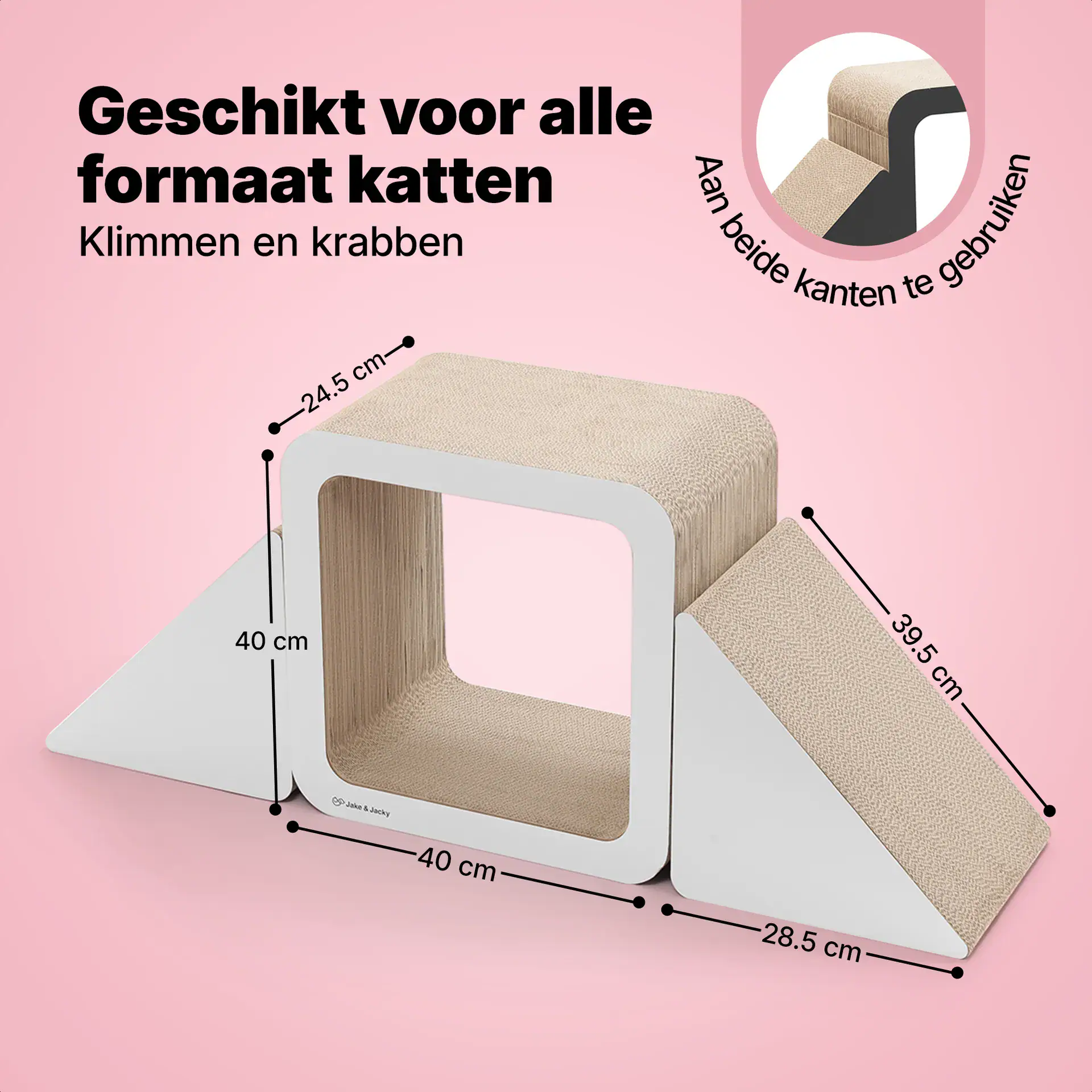 Naast dat dit krabmeubel graag gebruikt zal worden om aan te krabben, is het ook heerlijk als kattenmand en een fijne speelplek voor jou kat(ten). De 3 losse blokken zijn in elke gewenste opstelling neer te zetten voor speelvariatie, extra leuk om 2 sets neer te zetten voor nóg meer speel mogelijkheden of bij meerdere katten. Kies ook je gewenste kleur, wit of zwart of maak een mooie combinatie.