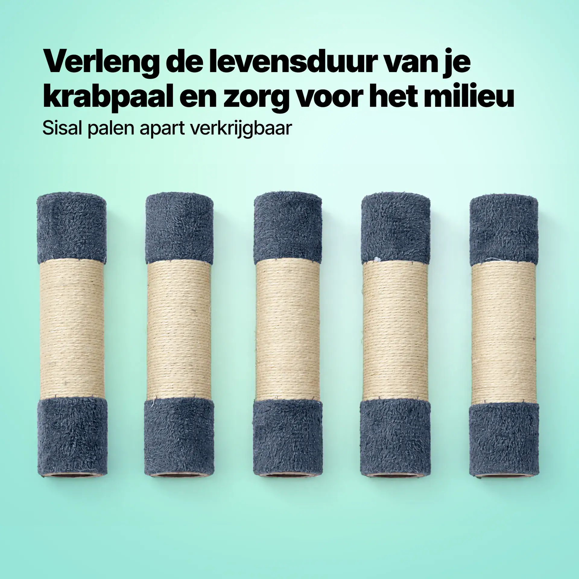 Een vervangset bestaande uit 5 sisal krabonderdelen voor de donkergrijze Jake and Jacky Krabpaal JJ-KP-005DG.