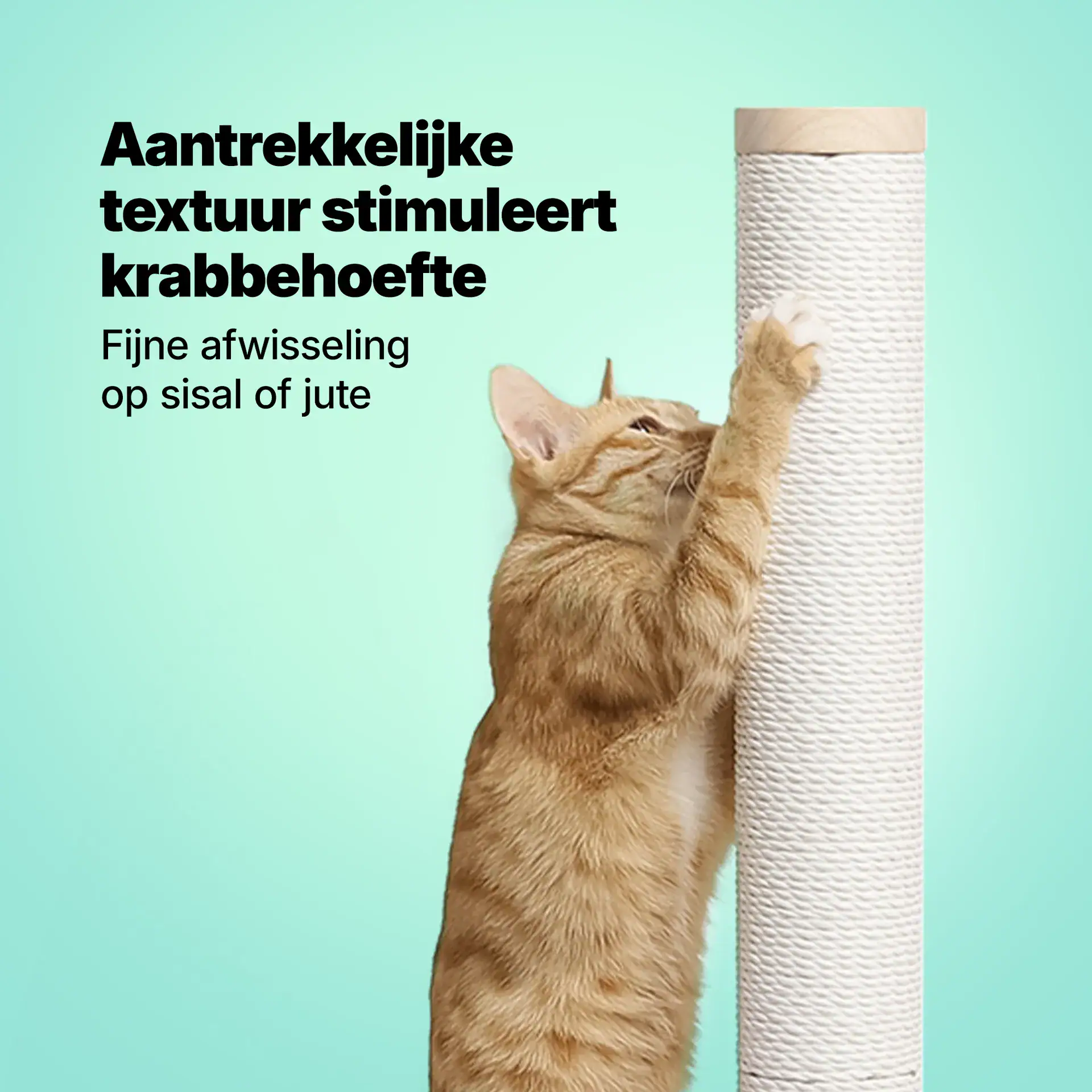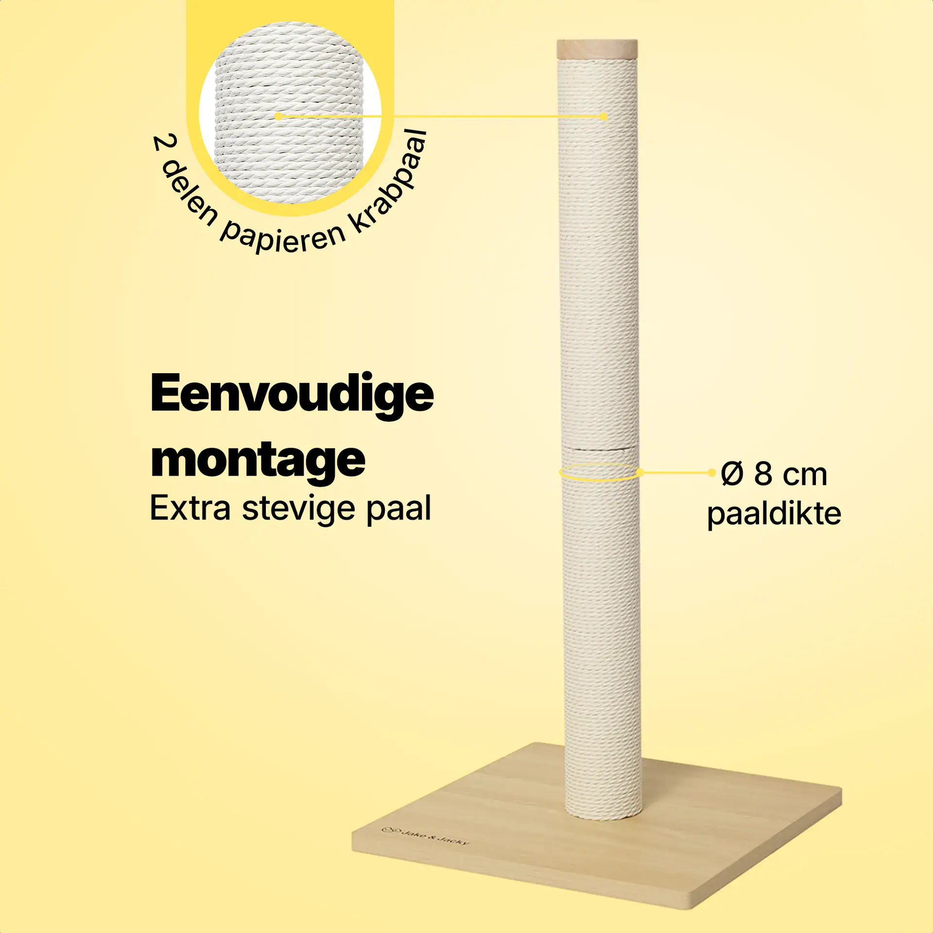 Katten zijn dol op de textuur van karton om hun nagels aan te scherpen en het geluid dat dit maakt bij het krabben. Daarbij is krabben aan papier een zachtere kraboptie voor kattennagels en bied het een fijne afwisseling met andere krabmaterialen zoals sisal en jute. Onze krabpaal van Ø 8 cm is volledig bekleed met 100% gereycled papier en plantaardige lijm wat het een milieuvriendelijke keuze maakt.