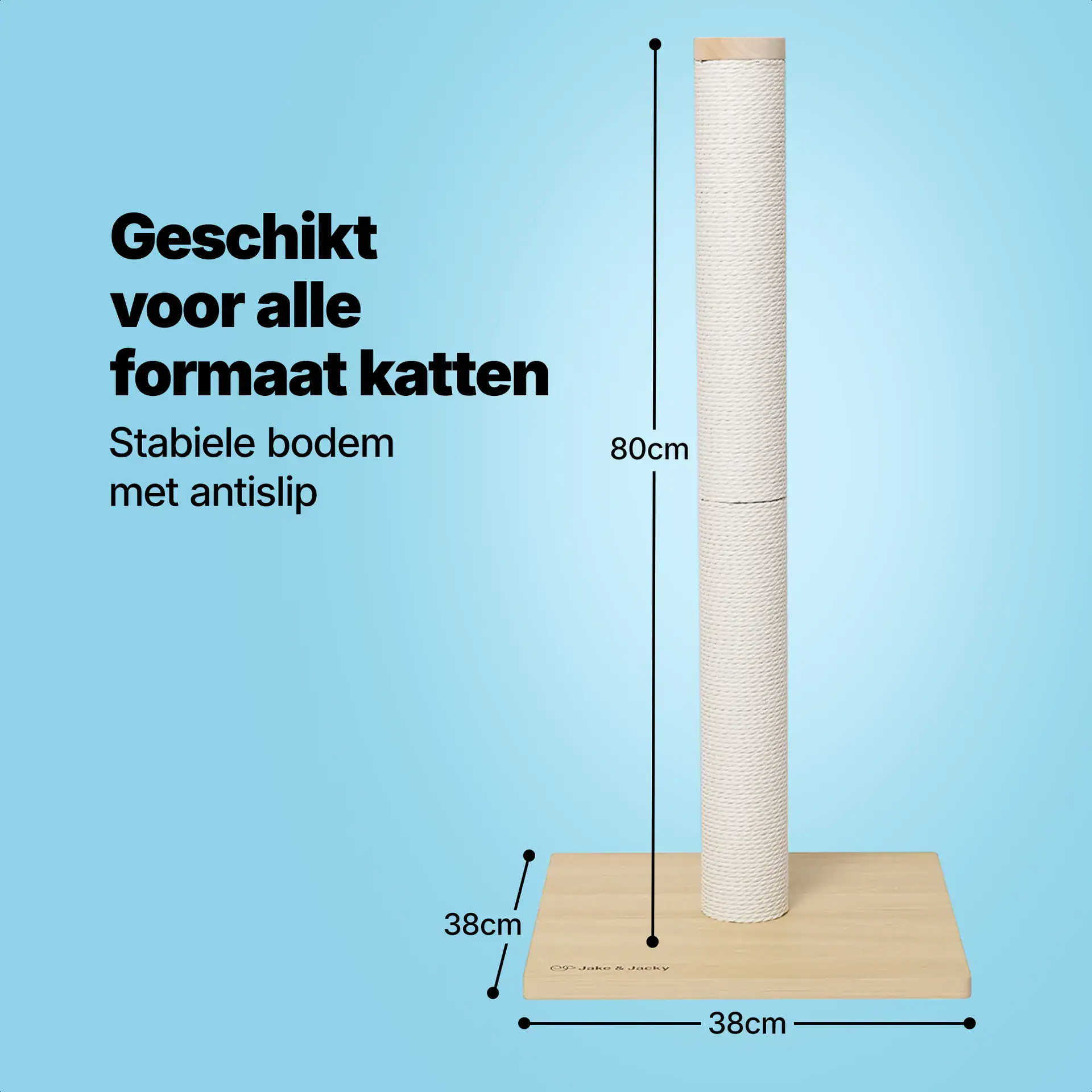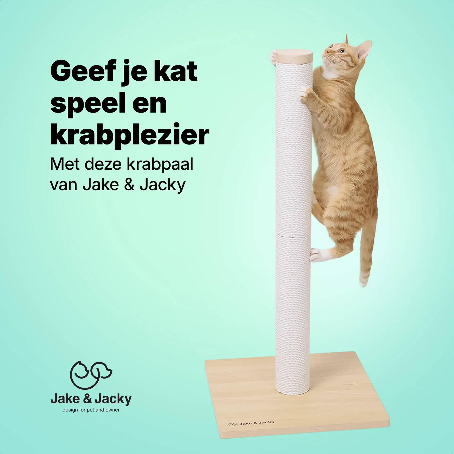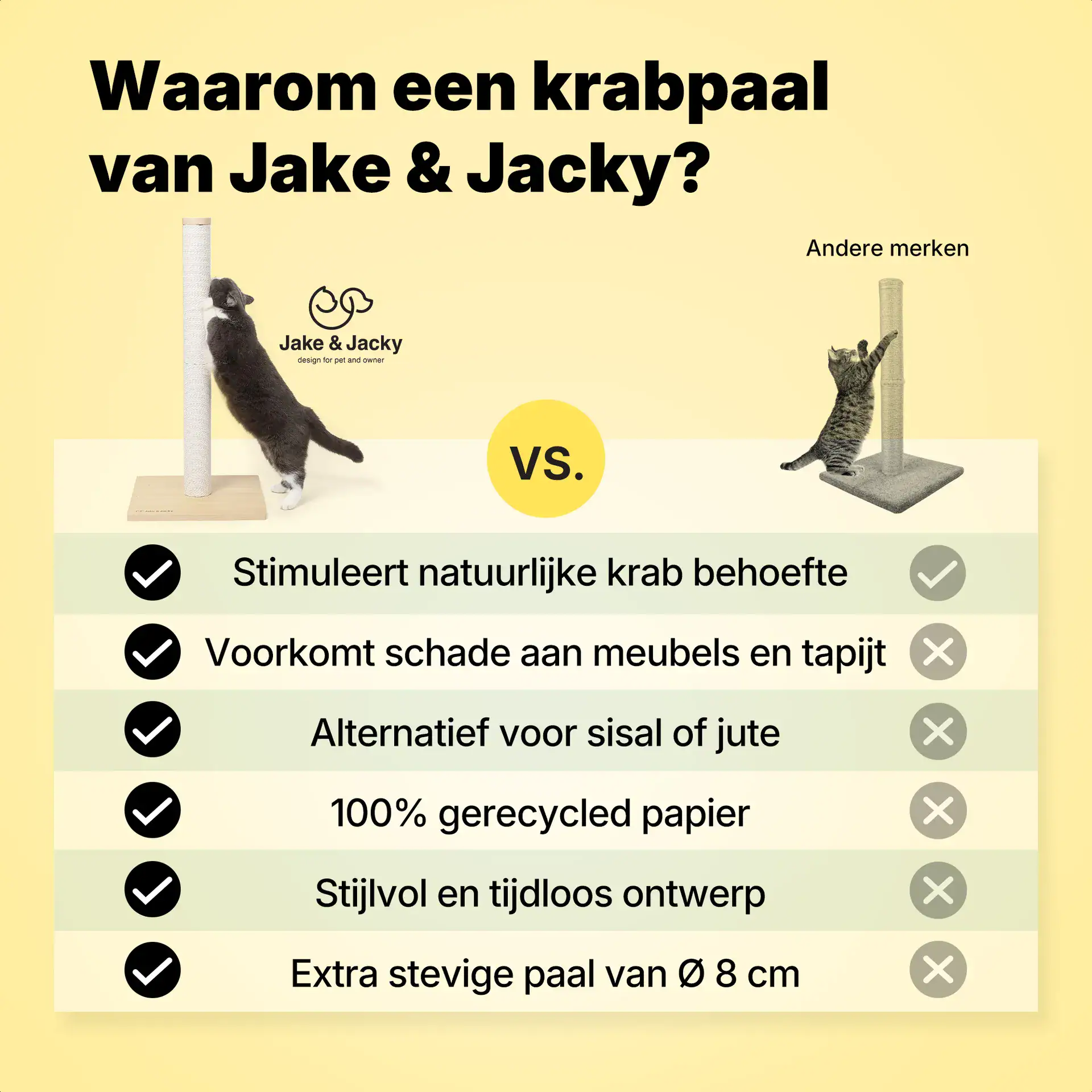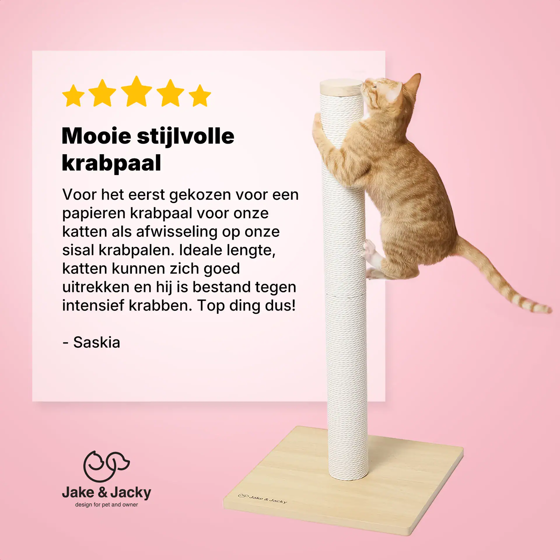 Deze papieren krabpaal van Jake & Jacky is het ultieme krabmeubel voor design en milieu bewuste katteneigenaren en hun tijgers! Met een indrukwekkende lengte van 80 cm en een stevig houten plateau biedt deze stijlvolle krabpaal genoeg ruimte voor je kat om naar hartenlust te krabben. Goed verzorgde nagels voor jouw kat, met meubels die gespaard blijven!