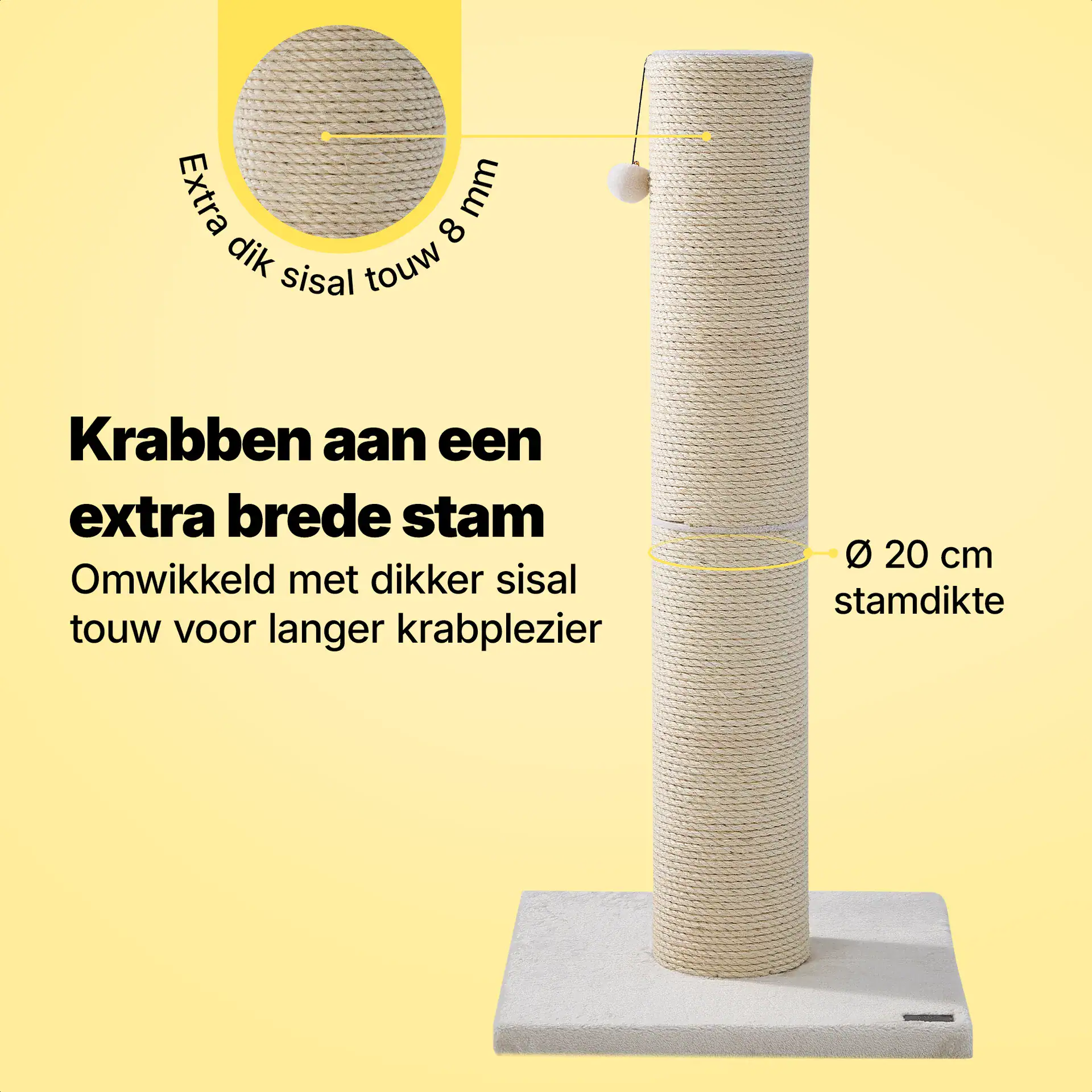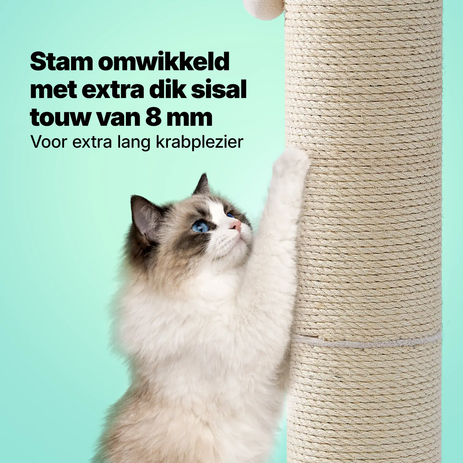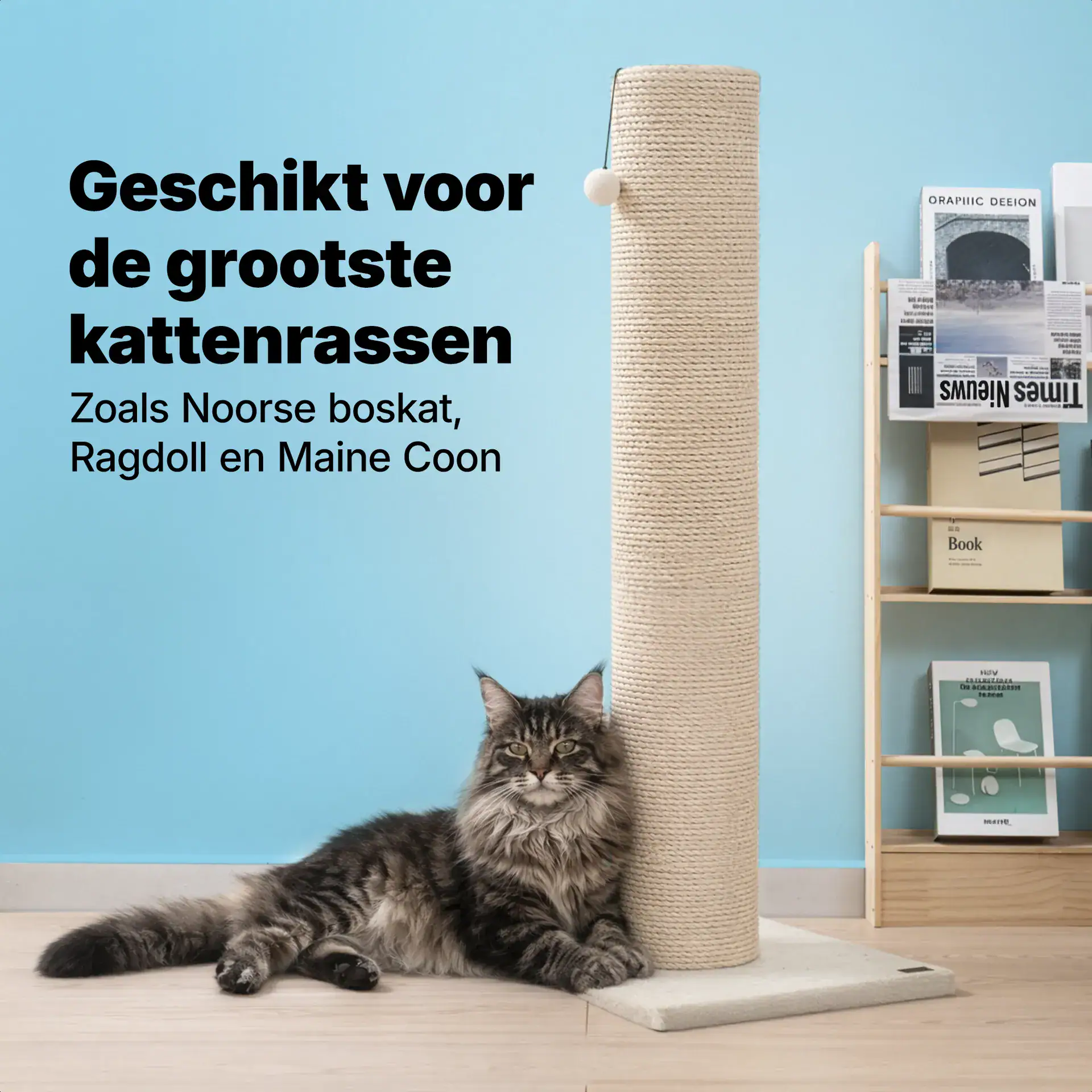 Deze krabpaal is speciaal ontworpen voor grote kattenrassen denk aan een Maine Coon, Ragdoll en Noorse Boskat. Hij is lang genoeg zodat jouw kat zich volledig kan uitrekken en bied genoeg uitdaging om te klimmen en spelen.