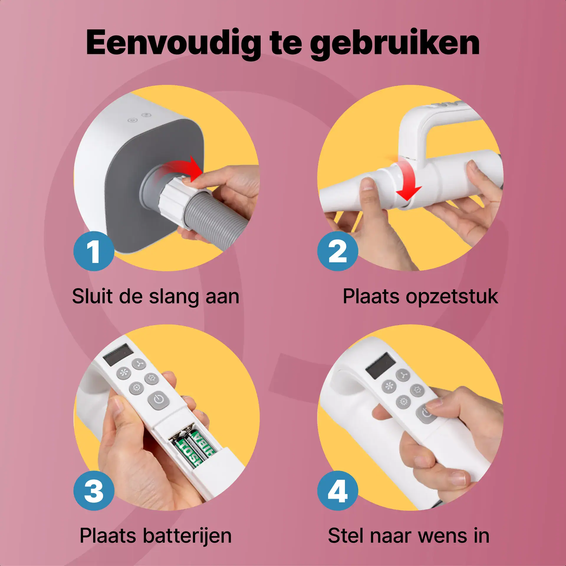De hondenföhn is door iedereen te bedienen (kinderen altijd onder toezicht), lees alvorens wel de handleiding goed door.